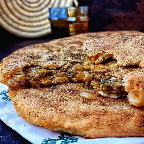 A traditional Saharan dish filled with spiced meat, onions, and herbs, slowly baked under the sand, offering rich flavors and an authentic desert taste.