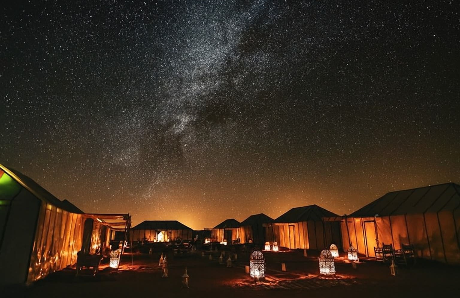 Spend an unforgettable night in a luxurious desert tent equipped with modern comforts, elegant decor, and panoramic views of the Sahara. Enjoy fine dining, serene surroundings, and the magical starry sky for a truly exclusive desert experience.